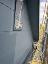 足場が組み上がった後、その外側を「メッシュシート(飛散防止ネット)」で覆います。これには、高圧洗浄時の水しぶきや、塗装時の塗料が風に乗って近隣の車や壁に付着するのを防ぐという、非常に重要な役割があります。倉敷市のような風が通りやすい地域では、このネットの固定も丁寧に行う必要があり、これら全ての工程を含めて「足場工事の1日」となります。